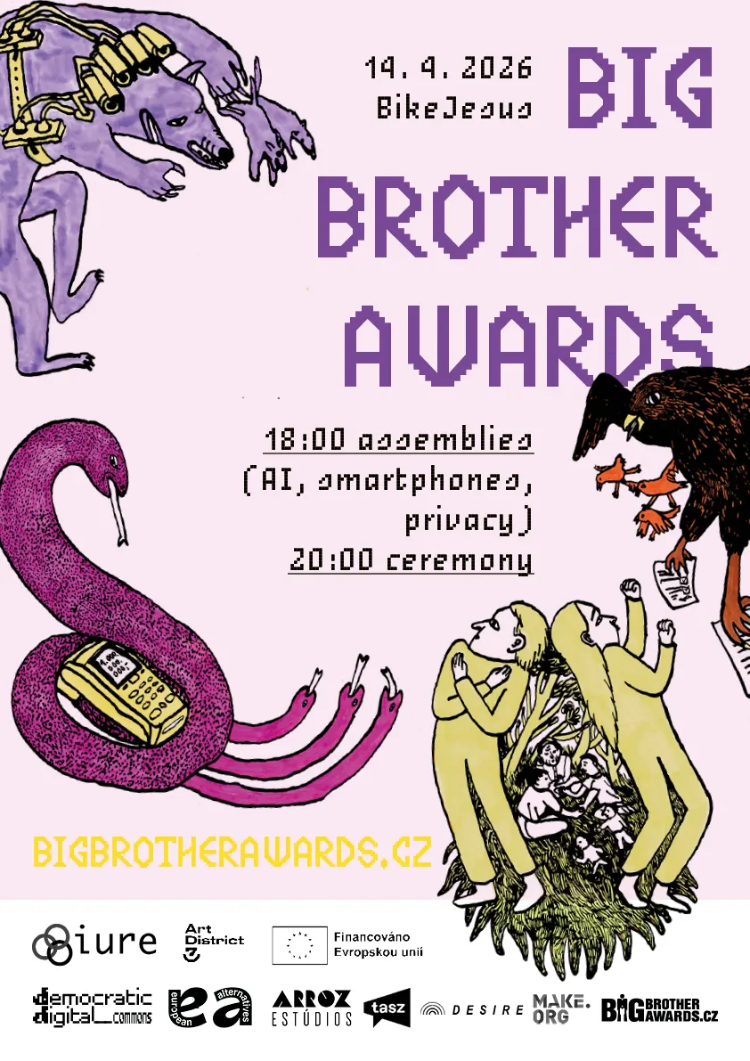 The 21st Big Brother Awards, where we recognize the biggest privacy violators of 2025, will take place on Tuesday, April 14 in Prague at the BikeJesus club on Štvanice Island.