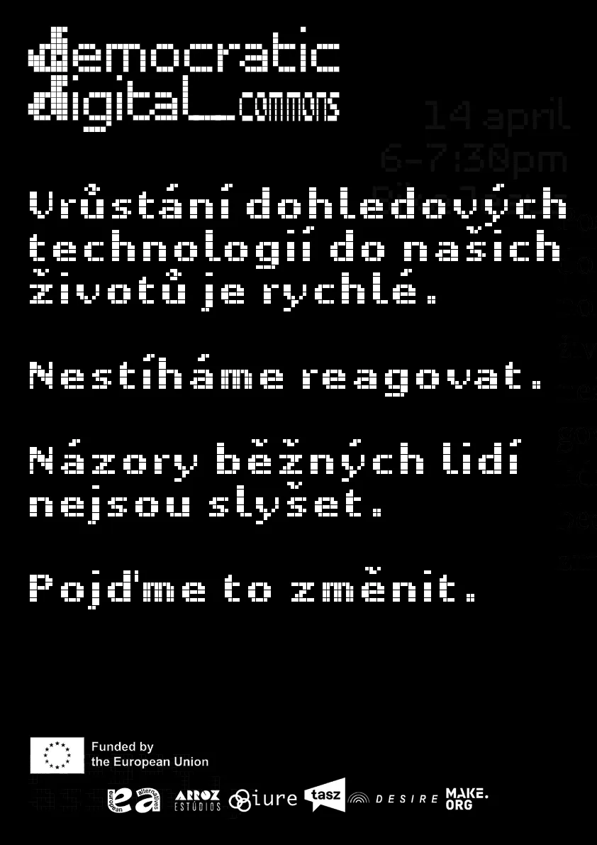 Při vstupu na diskuzní shromáždění i na ceremoniál vás poprosíme o potvrzení účasti vyplněním stručného formuláře. Ten potřebujeme pro reportování projektu Democratic Digital Commons, v rámci kterého letos celou akci pořádáme. Součástí projektu jsou i další mezinárodní diskuzní shromáždění, na které se můžete přihlásit tady.